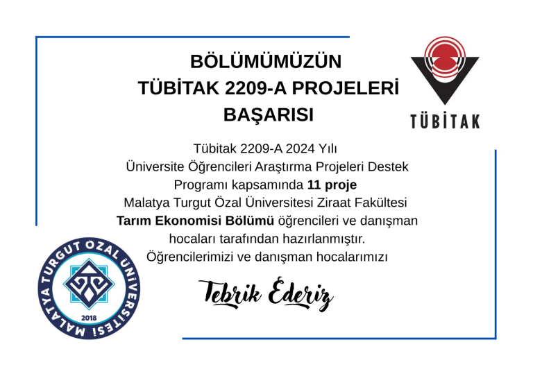 TÜBİTAK 2209-A Üniversite Öğrencileri Araştırma Projeleri Destekleme Programı 2024/1 döneminde 114 projemiz desteklenmeye hak kazanmıştır.