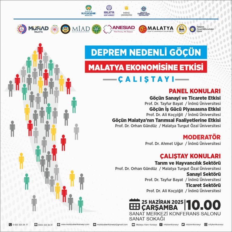 Malatya Valiliği, Malatya Büyükşehir Belediyesi, Malatya Kent Konseyi Genel Sekreterliği, İnönü Üniversitesi ve Malatya Turgut Özal Üniversitesi işbirliğinde düzenlenen “Deprem Nedenli Göçün Malatya İline Etkileri” çalıştaylar dizisinin dördüncü konu başlığı olan “Deprem Nedenli Göçün Malatya Ekonomisine Etkisi” çalıştay programı gerçekleştirildi. Panele Üniversitemiz rektör yardımcısı ve bölüm başkanımız Sayın Prof. Dr. Orhan GÜNDÜZ de konuşmacı olarak katıldı.